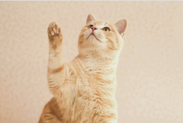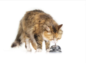 猫の手をベルの上に誘導し、音が鳴ったらご褒美を与えます。