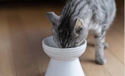 高さのないお皿の場合は、首を曲げた姿勢でご飯を食べることになるので、負担がかかりやすく吐き戻しにつながります。